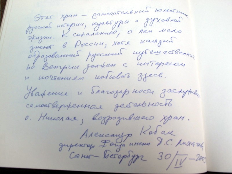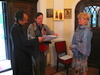 27 апреля. Понедельник. Храм посетили представители Санкт-Петербургского издательства религиозно-философской литературы "Алетейя" - главный редактор Игорь Савкин и сотрудник издательства Надежда Андрианова. Издательство "Алетейя" не первый год тесно сотрудничает с нашим приходом, так, в 2004 году оно издало книгу О.Воловика "Александра" - популярное издание о жизни Великой княгини Александры Павловны и истории нашего храма.